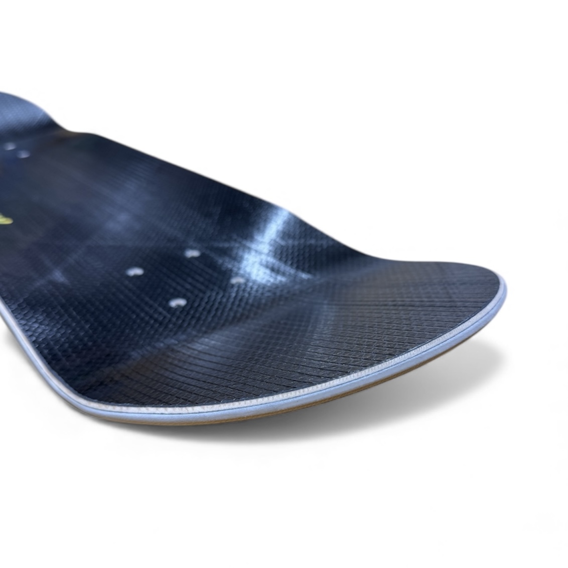 The core is reinforced both on the top and bottom with full-size carbon-fiber sheets, enhancing strength, stiffness, and pop beyond that of conventional 7-ply decks. The bottom of the deck is finished with a slick layer, ensuring smooth slides and consistent performance in all conditions.