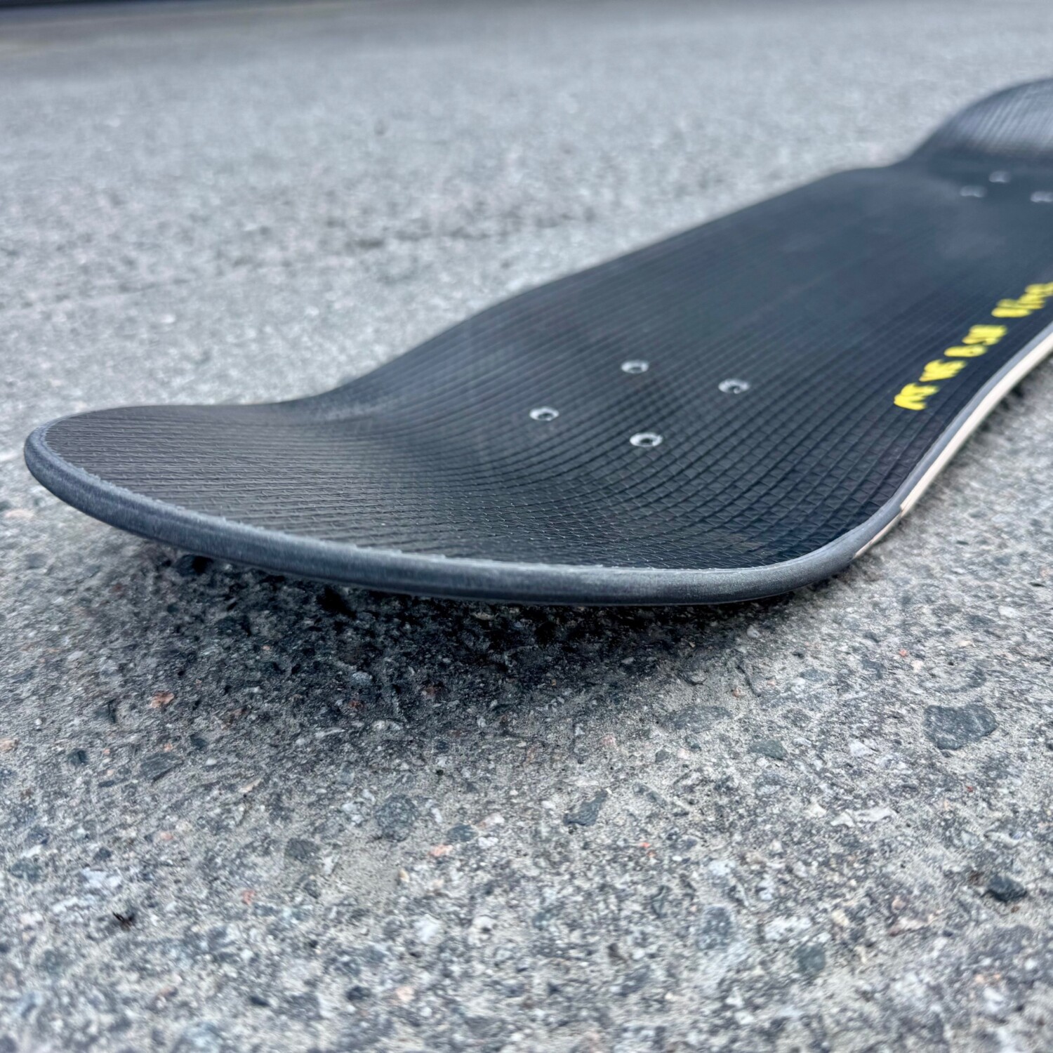 To maximize strength and stiffness without adding excess weight, full-size carbon fiber layers are integrated above and below the core. The base of the deck features a durable slick layer that reduces friction and ensures smooth, consistent slides across all surfaces. Graphics are applied directly to this layer, ensuring long-lasting visual appeal.