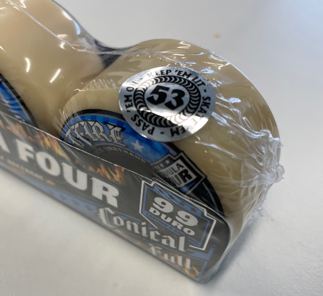 Spitfire Formula Four (F4) urethane has unmatched abrasion resistance for fewer flat spots. More controllable grip. Lasting speed no matter the terrain. Smooth anti-slick slide and a longer lasting size and shape. That’s why Spitfire Formula Four skateboard wheels are the most popular wheels on the market.